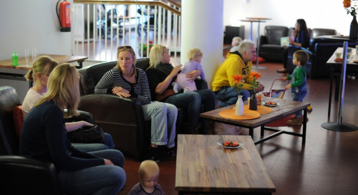 GEMENSKAP 15/09 2011En del av Filadelfiakyrkans läktare har i praktiken varit småbarnsfamiljers hemvist sedan tidigare och nu heter stället träffande Föräldra Lounge.
