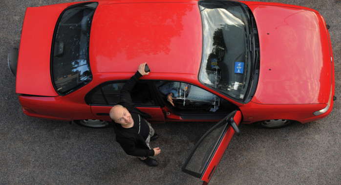 TEKNIK 16/09 2011Janne, eller snarare teknik-Janne, har fotograferats tillsammans med något som liknar en röd bil med ett suspekt högteknologiskt bakstycke. Det är uppenbarligen en del som inte ingår i bilens fabrikutrustning.