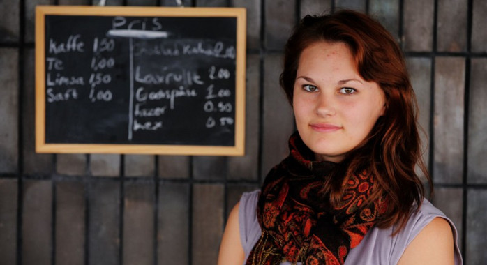 FRITID 28/06 2011Sonja håller tillsammans med två kompisar ett café uppe i Nykarlebys vattentorn. Gästerna får köpa ungsfärska bakverk, laxrullar och glass samtidigt som de får njuta av panoramautsikten.