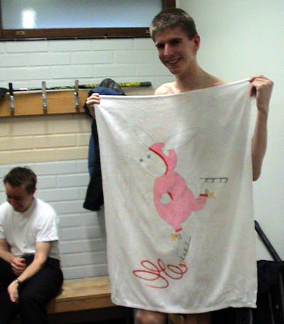 "I like pink rabbits", Axel explained why he had a towel like that.