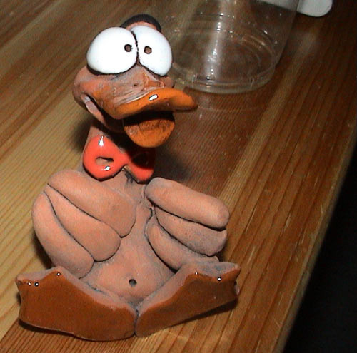 OLD ARTICLES. Oskar's small helper now need a name. The small duck really deserves a name considering the enormous amount of attention that small piece of clay gets each day.