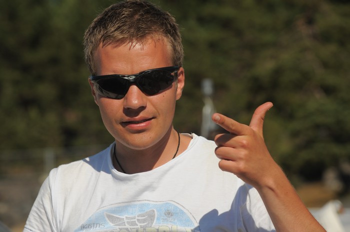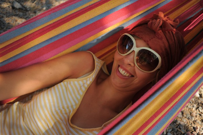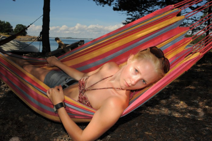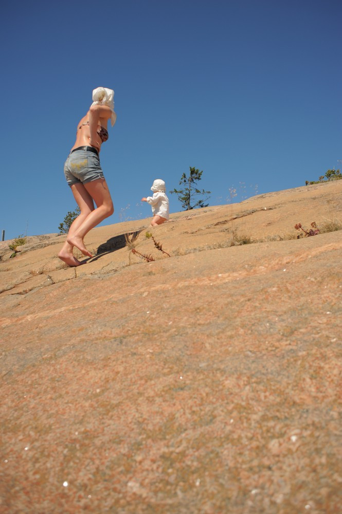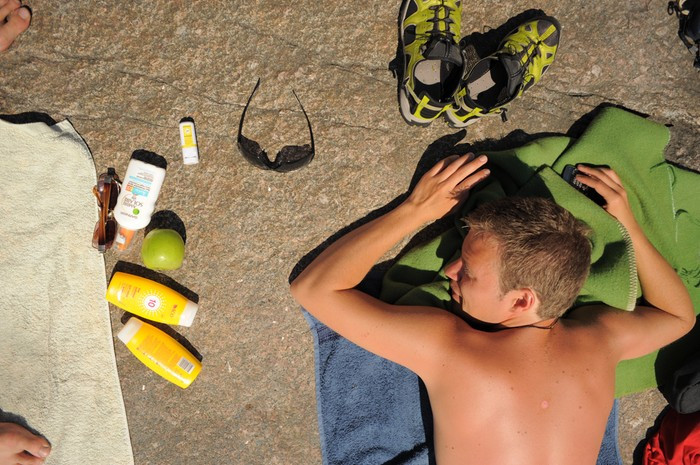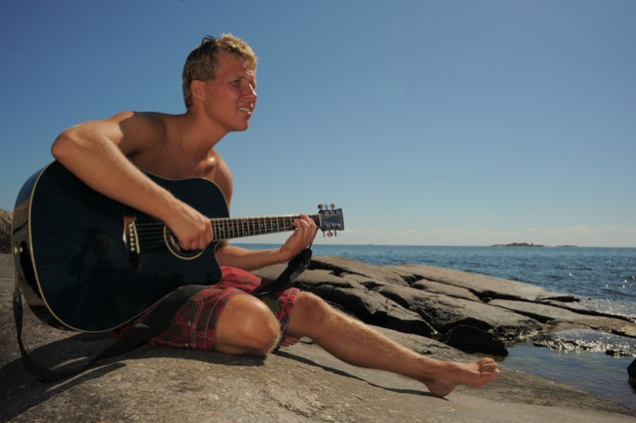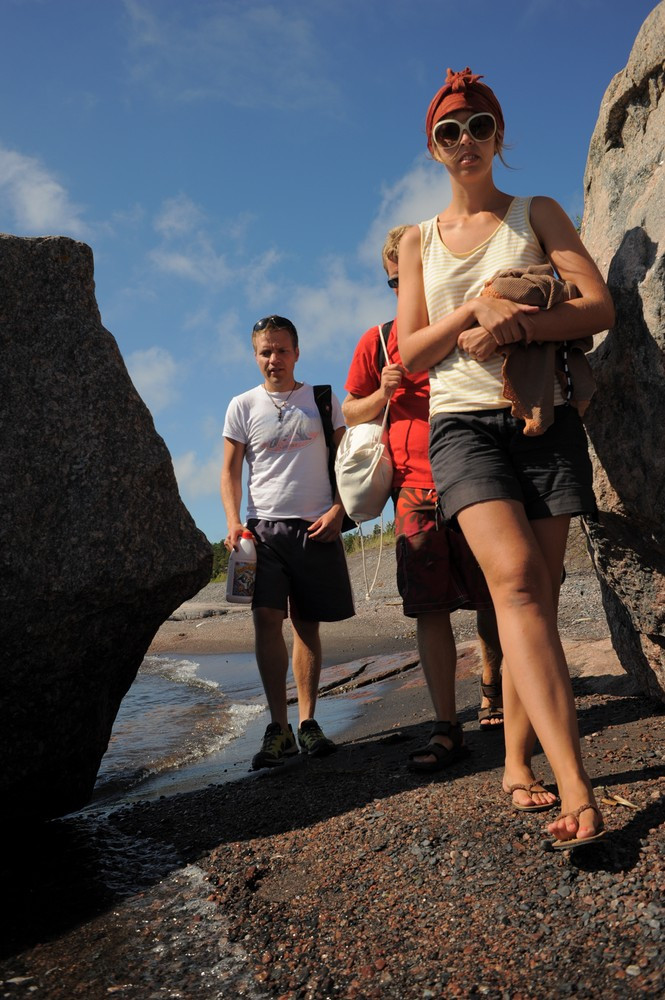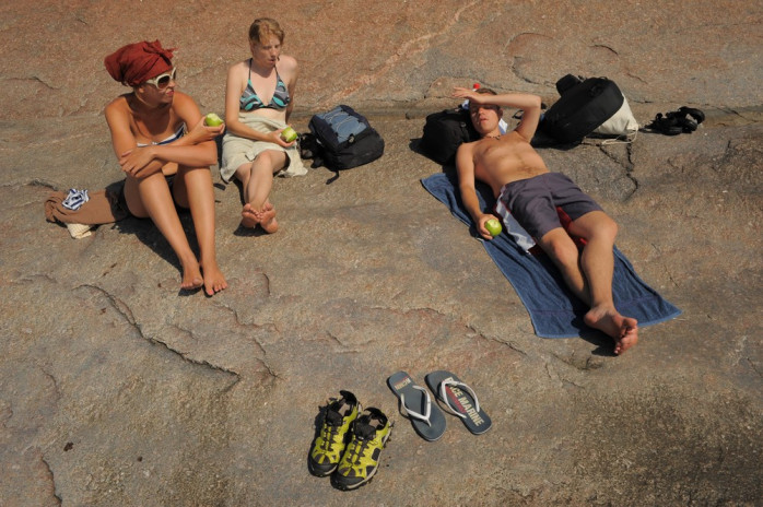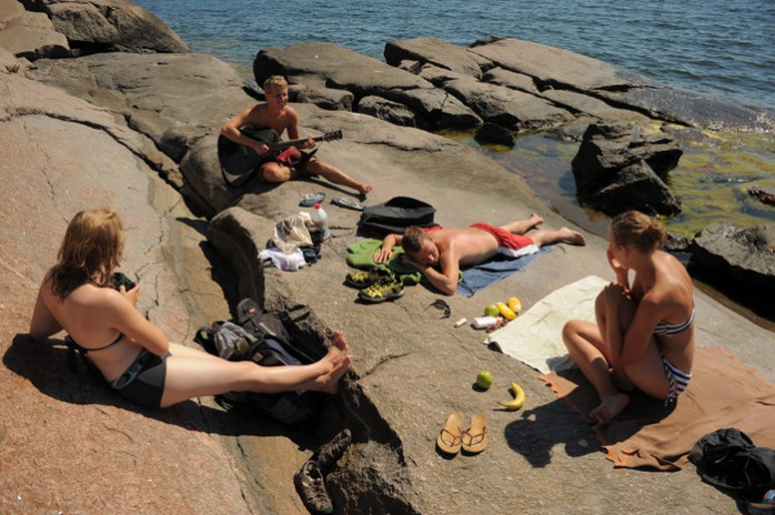Hela sällskapet slog solbadeläger på klipporna, precis intill sandstranden. Stefan och Andreas hade med sig en grill, mat, gott humör och en gitarr.
