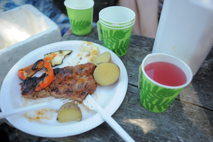 Efter sol och sångstunden gick alla till grillstället, utom Juni, som låg i vagnen och sov.