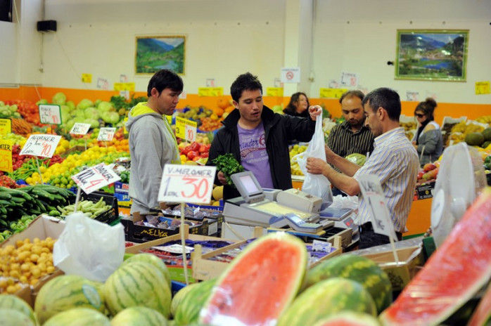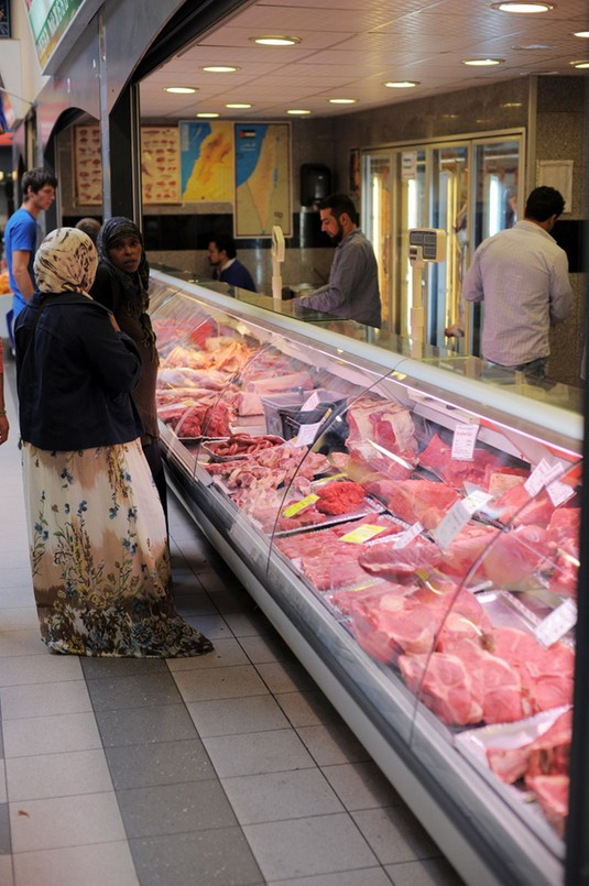Marknaden är i ett område i Århus med många invandrare, något som också syns i det stora antalet invandrare bland kunderna och försäljarna.