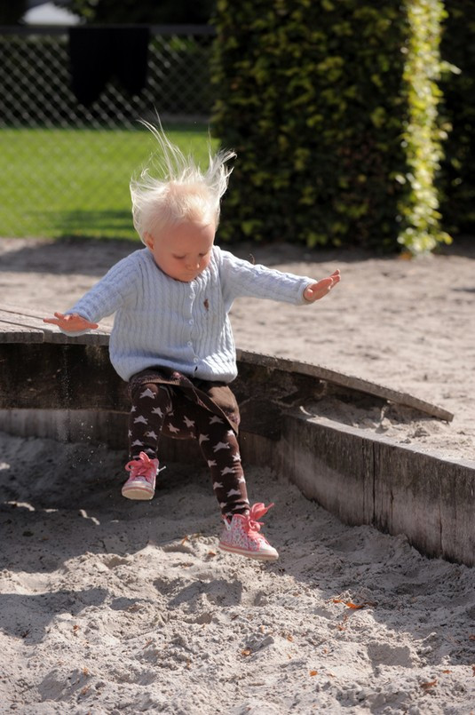 Junis föräldrar såg först skräckslagna på, men eftersom underlaget var mjuk sand så gick det bra. Juni fortsatte dagen med att hoppa många gånger.