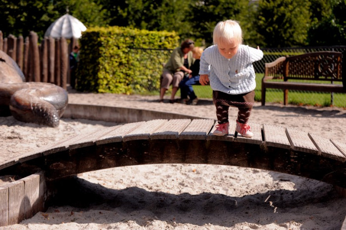 ALLMÄNT. I en kunglig trädgård i Köpenhamn inspirerades Juni av en äldre pojke att hoppa från en liten bro.