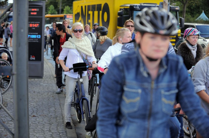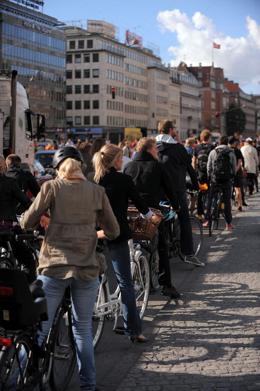 Men cyklingen är inte bara dans på rosor. I Danmark kan man nämligen hamna i cykelstockning. Det kan vara rusning på cykelvägarna och på parkeringsplatserna. Dessutom verkar de flesta, gammal som ung, ha väldigt skyndsamt. Men trots att cykeln mest används som ett fordon så finns det ändå de cyklister som socialiserar och till och med kurtiserar på den populära cykelvägen.