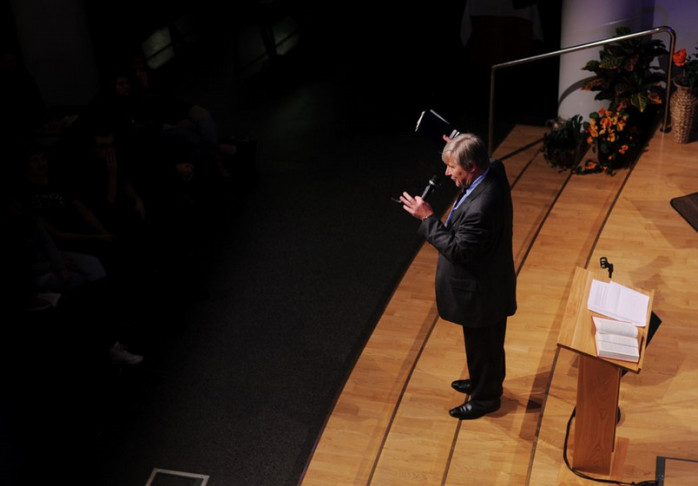 ALLMÄNT. Kenneth Grönroos inspirerade många i Filadelfiakyrkan ikväll genom att bland annat understryka vikten i att inte låta sina tankar blandas med världens tankar. Kenneth noterade också att man inte skall isolera sig från världen, för Gud älskar världen.