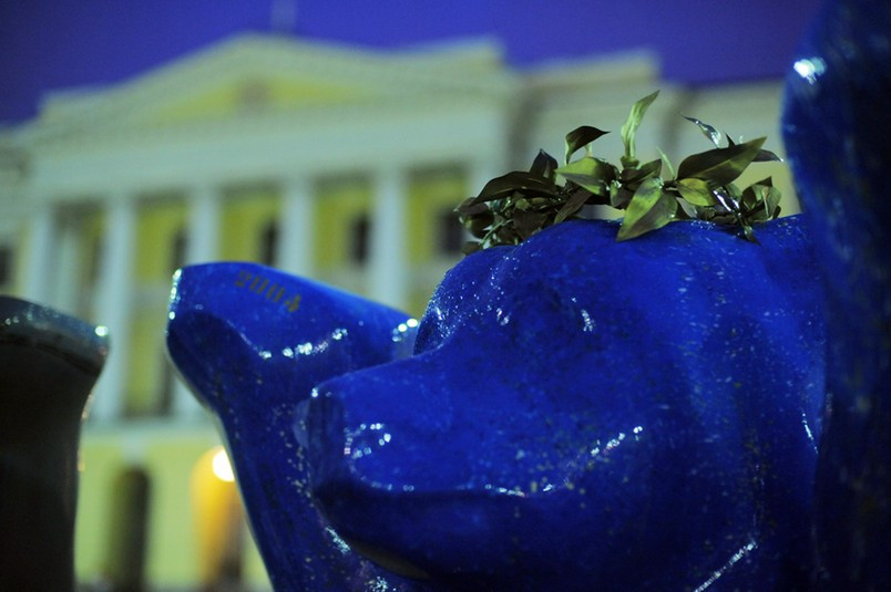 ALLMÄNT. Kreativt dekorerade tvåmeters-nallar fångar nyfikna blickar på Senatstorget, vid domkyrkan.