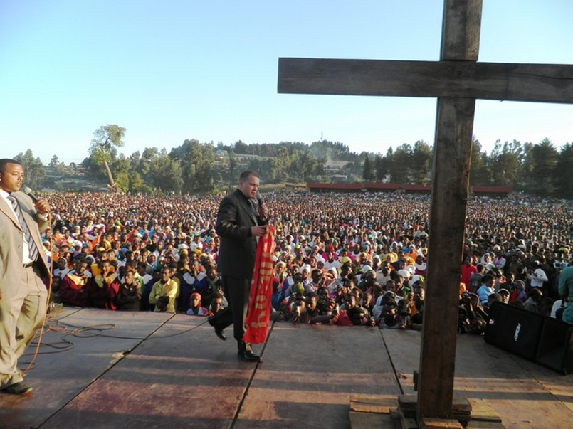Folket flockade snabbt runtomkring oss särskilt när vi var på en marknadsplats då det blev oerhört trångt, c a 1500 omringade oss (se bilderna), vid det tillfället predikade pastor Benjamin evangeliet, mer överväldigande upplevelse får man leta efter (se bilderna)! De stora kampanjmötena på kvällarna var förstås också överväldigande, att få se Jesus förvandla fattiga och lidande etiopiers liv, i så stor mängd.