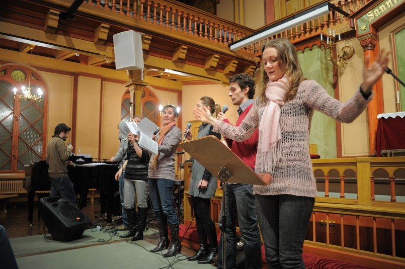 MUSIK. Det var glädje och förväntan i luften när kören His Master's Noise och vokalistgruppen Romberg övade gemensamma låtar i Andreaskyrkan på tisdagkvällen. Inkommande lördag sjunger de i Sion i Vasa och på söndagen i Runebergssalen i Jakobstad.