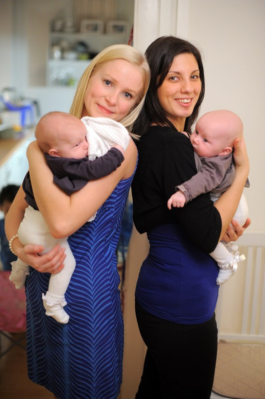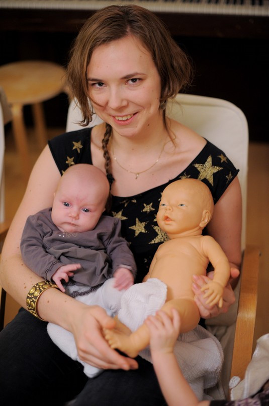 Nyårsaftonens stora intressemagneter var tvillingsystrarna Ada och Jenna som nästan alla i tur och ordning höll i famnen.