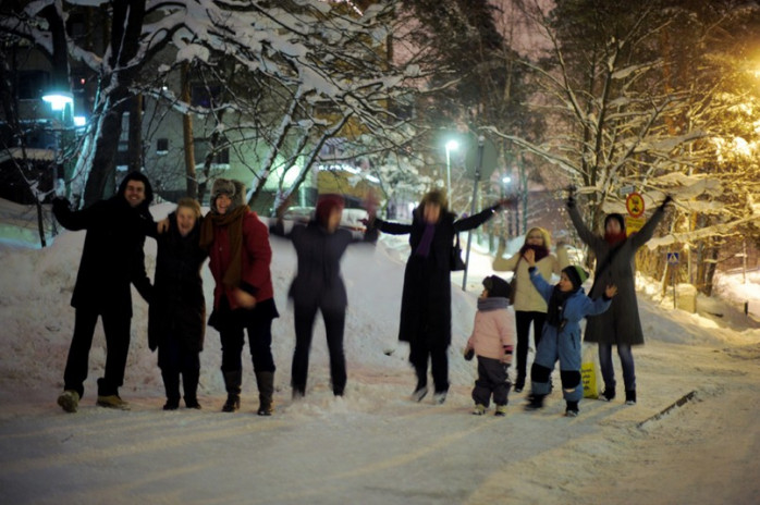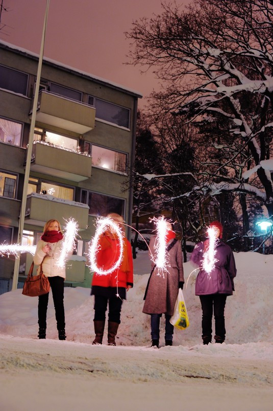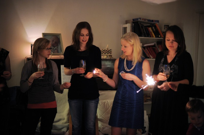 ALLMÄNT. Christa och Petra stod värdar för en lyckad nyårsfest i södra Haga. Tiina stod för singstartekniken, alla för maten, Ben och Viktor för pyroteknik.