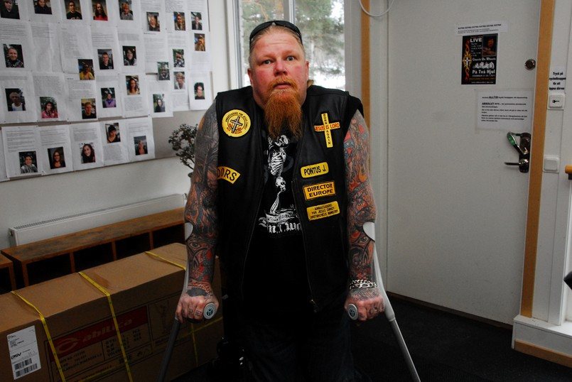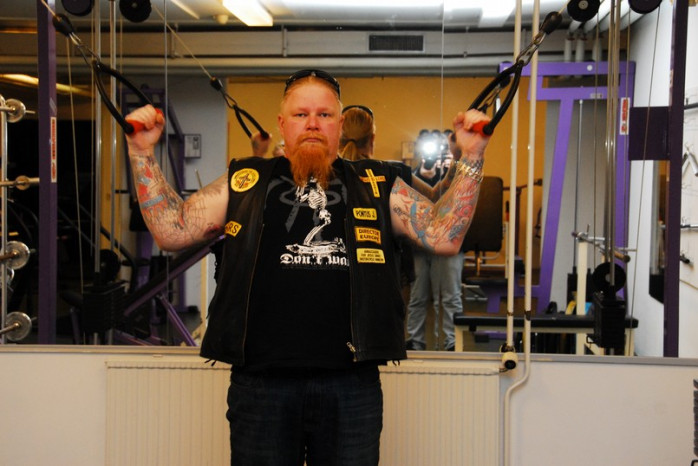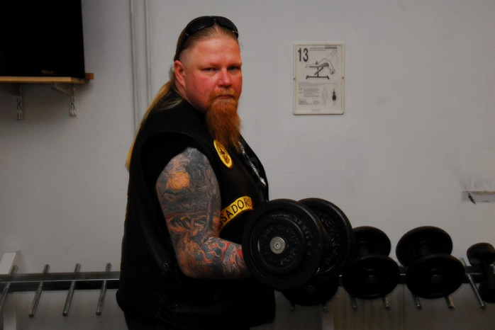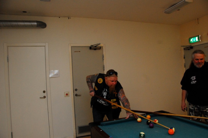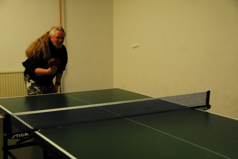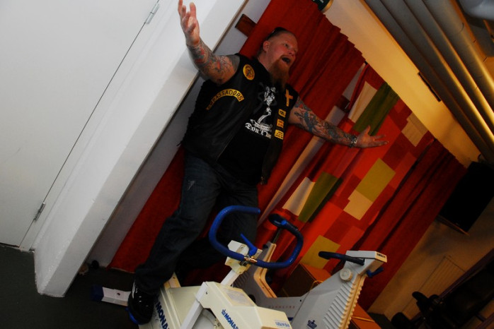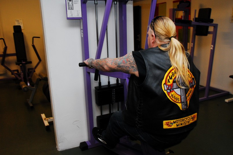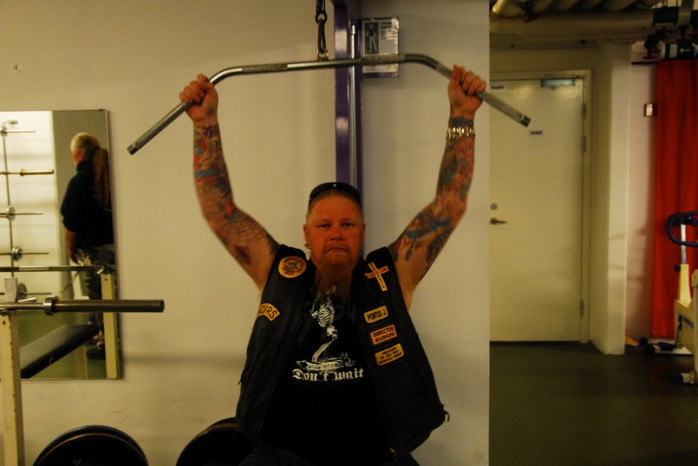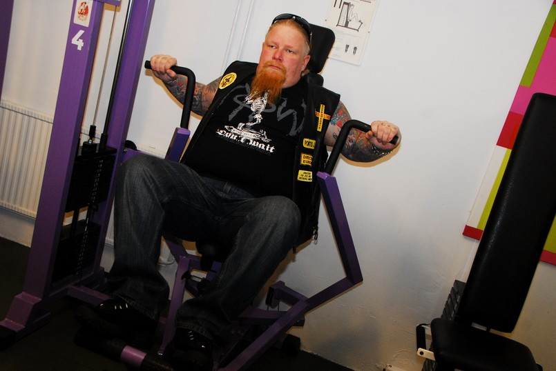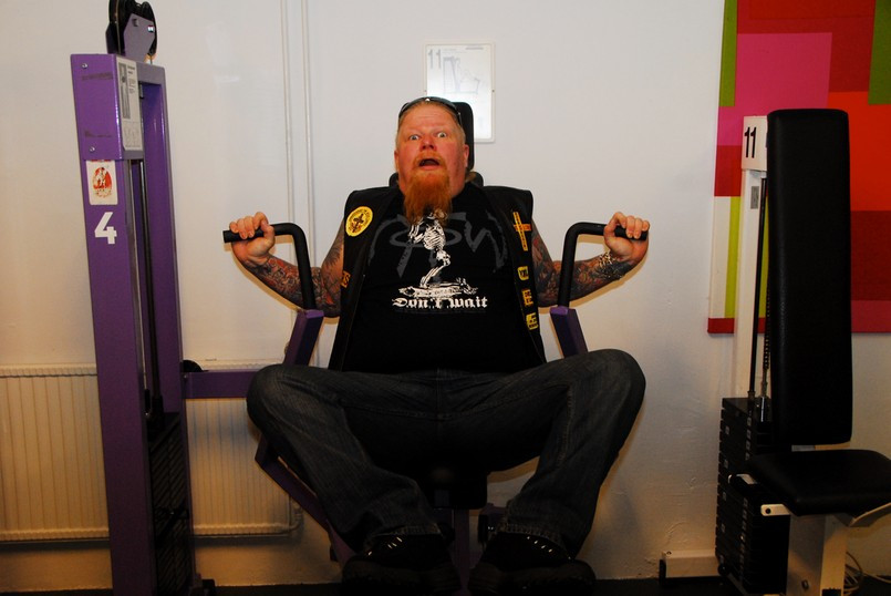 Jag fick genomgå hårda prövningar men kom underfund med att det fortfarande finns krafter i de gamla musklerna. Olika apparater prövades och det kändes nästan som om svetten skulle ha runnit i pannan. Lasse instruerade mig hur man använde de olika apparaterna. Dock hade han synpunkter på min gymklädsel och i sitt inre tänkte han nog att det inte är många som tränar på gym klädda i skinnväst och jeans. Ping pong och biljard fanns även med på schemat liksom en presentation av hur man använder innebandy klubban. Efter sessionen var jag så trött att jag var tvungen att gå ut med ett par käppar.