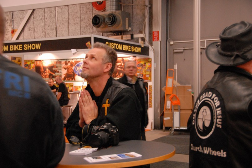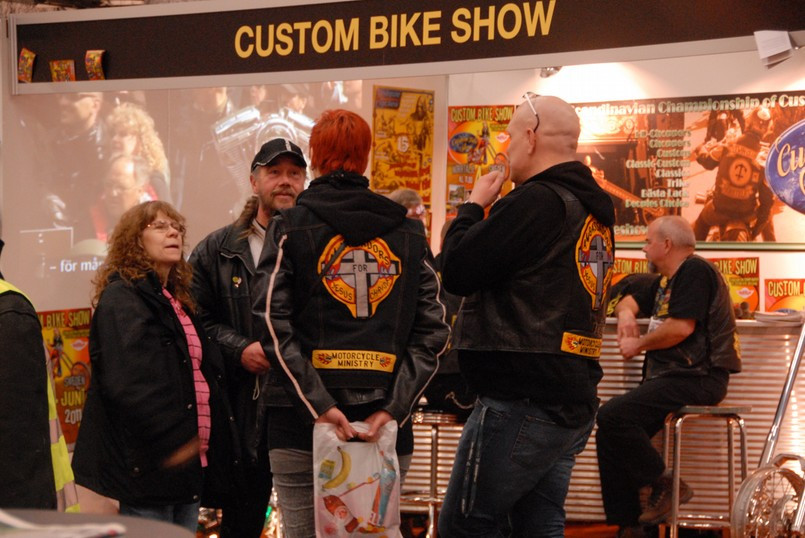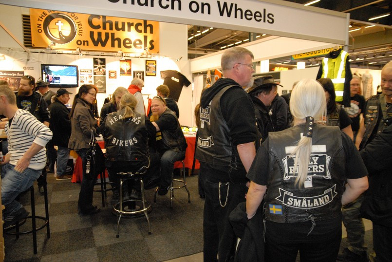 De fyra dagarna på mässan var fantastiska. Tillsammans med andra klubbar såsom Heavens Bikers, Salvation Riders, Network MCK, Gospel Riders, Tyfri och många andra fick vi dela ut hundratals, ja, kanske över tusen biblar till besökarna. Vi hade många fina samtal med människor som stannade upp vid vår monter och det var faktisk rätt många som kunde lämna sina fördomar emot kristendomen efter att ha mött några av oss skäggiga, långhåriga och tatuerade Guds barn.