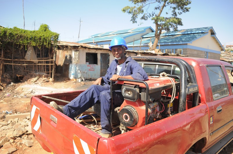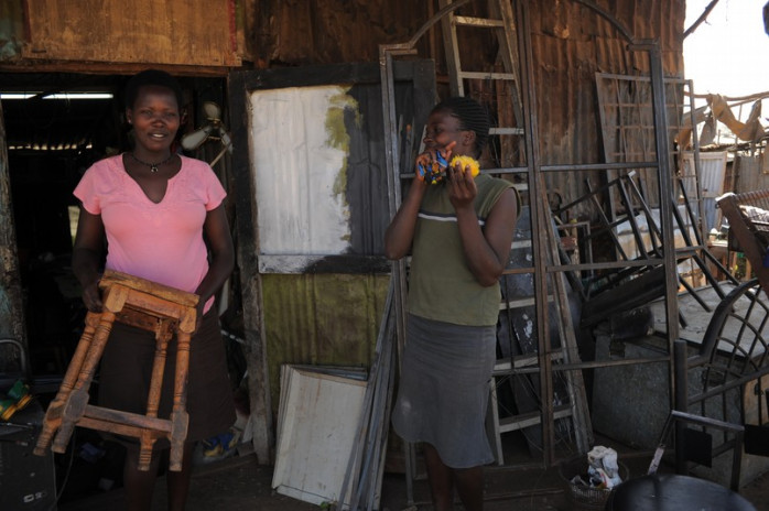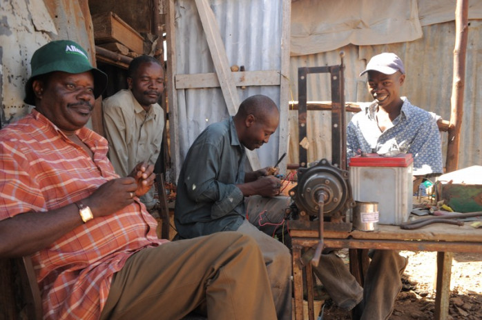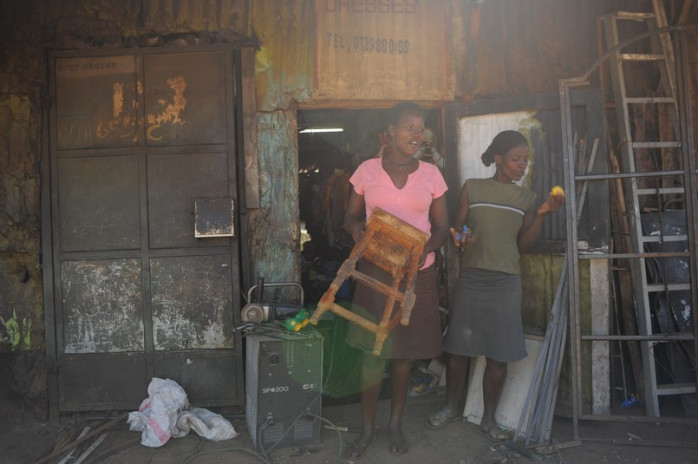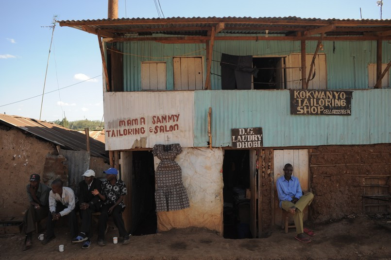 - Företag vill inte investera i fabriker Nairobi. Tänk bara på hur ofta strömmen går, på den klena infratrukturen och på oroligheterna, berättar chefen för gruppen. I Indien får skräddare material från företag och så syr de kläderna hemma och företagen kommer och plockar upp kläderna och syr fast sina märken. Här har invånarna inte råd att betala för panten för materialet.