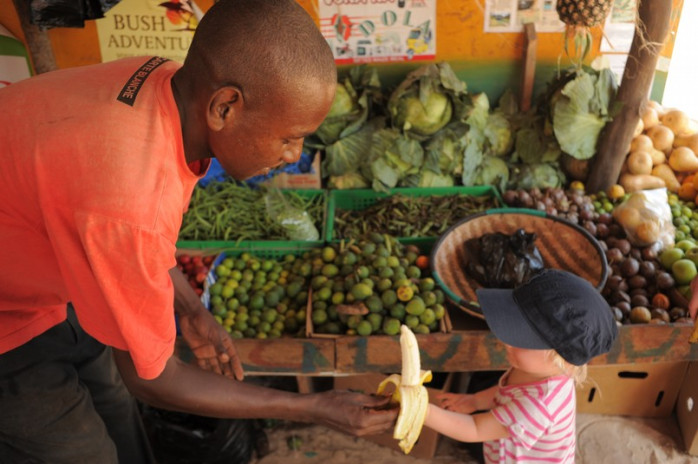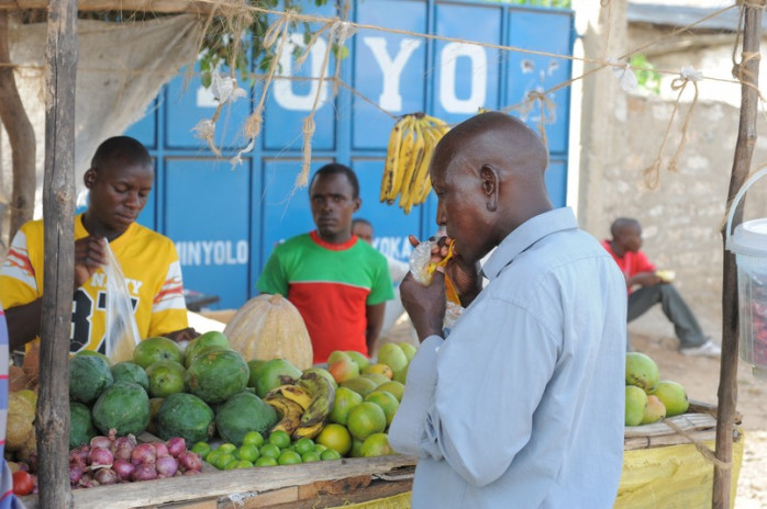 Till skillnad från i Finland så är den importerade frukten dyr i Kenya och den inhemska billig.