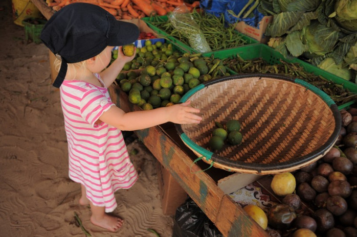 Fruktförsäljarna var i regel riktigt generösa. Förutom att alla hade osedligt låga priser på frukterna, bjöd också flera fruktförsäljare Juni på banan.