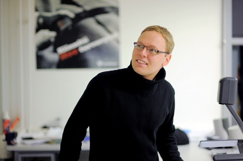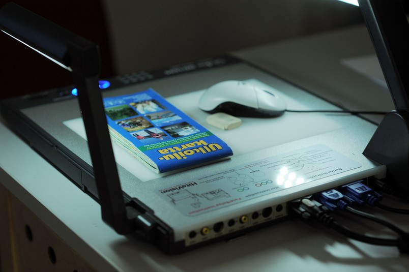 Anders demonstrerade projektorn som kan projicera föremål på väggen.