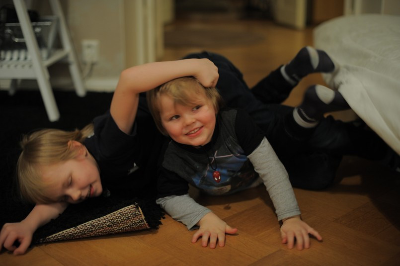FAMILJ. Grönroosarnas läckra lägenhet i femkanten i Helsingfors är full med liv. Caco och Line har i vanliga fall fullt upp med sina tre glada barn, men under sportlovsveckan fick de slappa.