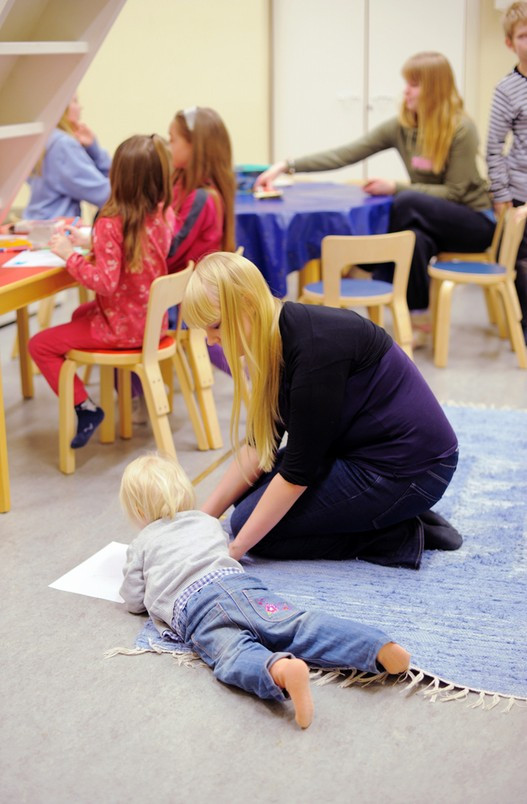 När Linus plockade upp Juni efteråt låg hon på mage på golvet och ritade tillsammans med Pia.