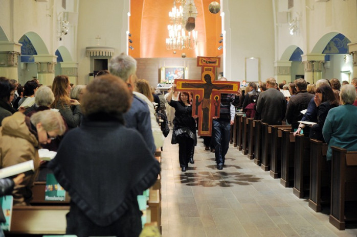 En kvinna berättade att hon varit med sedan starten för 20 år sedan och att det då kom 800 människor per gudstjänst och nuförtiden kommer omkring 600 besökare och att intresset alltjämt är stort.