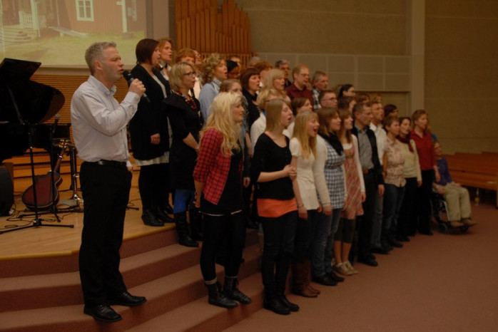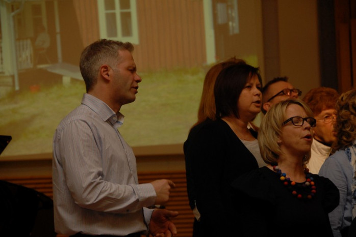 Pastor Patrik Hellström inledde kvällen med några välvalda ord om lägergården i Vassor och välkomnade den stora publiken som inte bara kommit för att lyssna på de olika artisterna utan också för att delta i insamlingen för lägergården. Kören Ichtys sjöng två inledningslåtar under ledning av Birger Tomas Koskinen och för undertecknad var det första gången jag såg kören uppträda. Jag har någon gång tidigare besökt deras repetitioner och jag har alltid haft en positiv bild av kören. Kören sjöng så det svängde och glädjen smittade av sig på publiken.