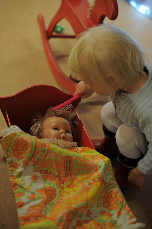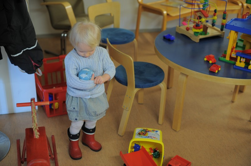 Juni brukar vara lite blyg en stund när hon träffar nya människor. Och fast hon känner sin hälsovårdare till namn och utseende tog fick hälsovårdaren vänta en god stund på att Juni skulle sparka bollen. Sparka bollen är ett balanstest som utförs.