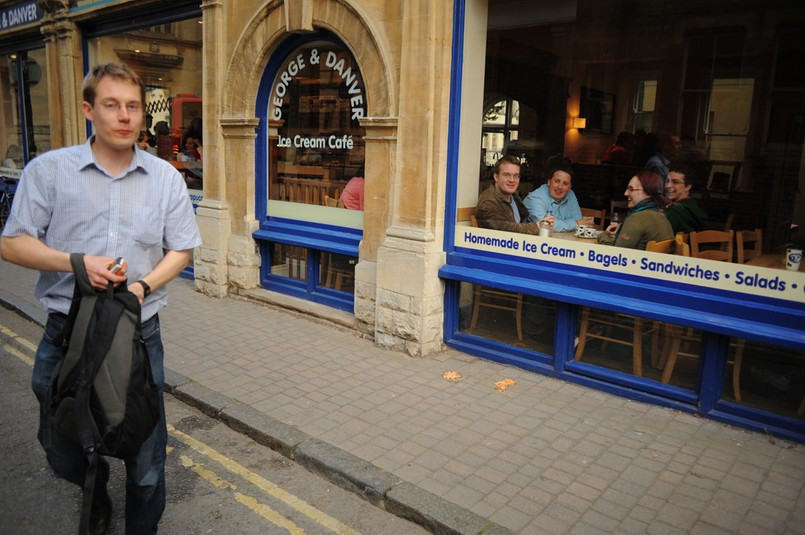 Innan mötet träffades ett gäng på en glassbar, här kommer JS