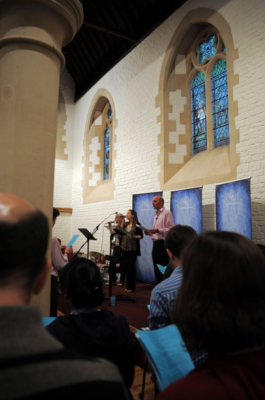 ALLMÄNT. Det hålls fyra populära gudstjänster på söndagarna i den anglikanska St. Ebbe-kyrkan i Oxford. JS den för unga vuxna omtyckta kvällsgudstjänsten för Linus.