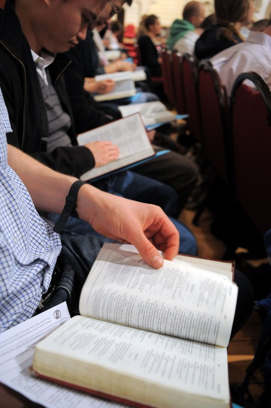 Undervisningen i St. Ebbe-kyrkan hade denna kvällen en verkligt hög nivå. Pastorn uppmanade alla att ta fram biblarna. Biblar fanns åt alla under framförvarande stol. Hela församlingen läste ett kapitel tillsammans från nya testamentet, samt flera stycken från gamlatestamentet som bakgrund eller förklaring. Pastorn undervisade med auktoritet och kraft.