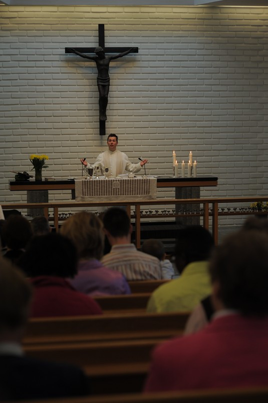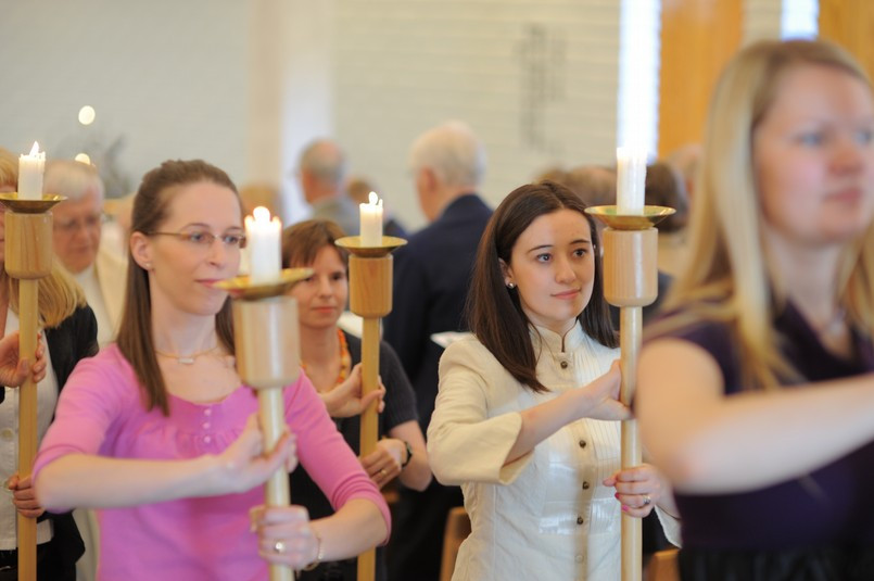 Glädjen bars upp med var mycket sång och körsång i kyrkan. Ett inspirerande tal och nattvard bjöd församlingen också på.