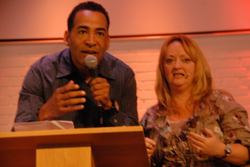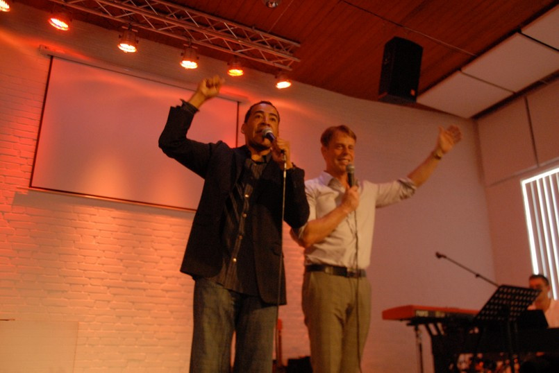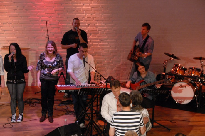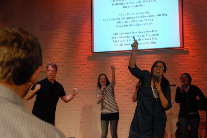 Mötet inleddes av Pastor Tommy Lilja som hälsade alla välkomna! Kyrkan var fullsatt, det fanns några platser här och där men nu på fredag och lördag kommer det nog säkert att vara riktigt fullt. Atmosfären var stark genast från början och redan i inledningsbönen kände jag en stark närvaro av Den Helige Ande. Det var fem före så att inte tårarna skulle ha börjat rinna ur mina ögon, en fantastisk och kärleksfull närvaro. Tommy berättade lite om helgens program och om konferensen. Sedan var det dags att lovsjunga Herren och det kändes verkligen som att jag skulle ha kommit hem. Lovsångsteamet skötte sig utmärkt och glädjen och passionen i deras skapelser smittade av sig. Jag måste nog erkänna att jag är aningen stel jämfört med många av mina svenska syskon, men inom mig var det rock and roll