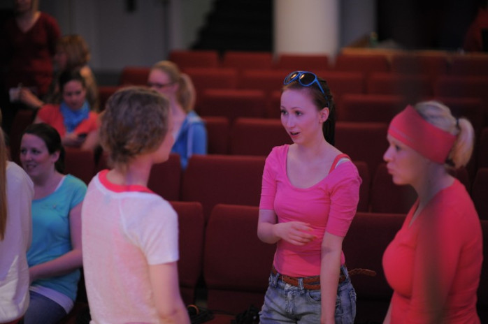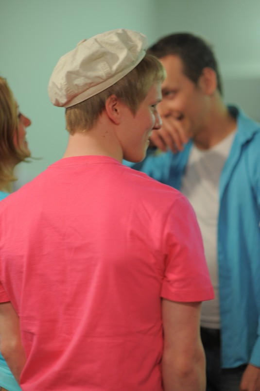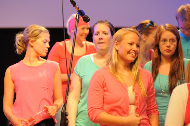 Eftersom någon ändå skulle ha frågat, så heter den rosa färgen som ingår i körens dresskod för klädseln fucsia (http://it.wikipedia.org/wiki/Fucsia_%28colore%29 ). Turkos och vit var andra färgalternativ.