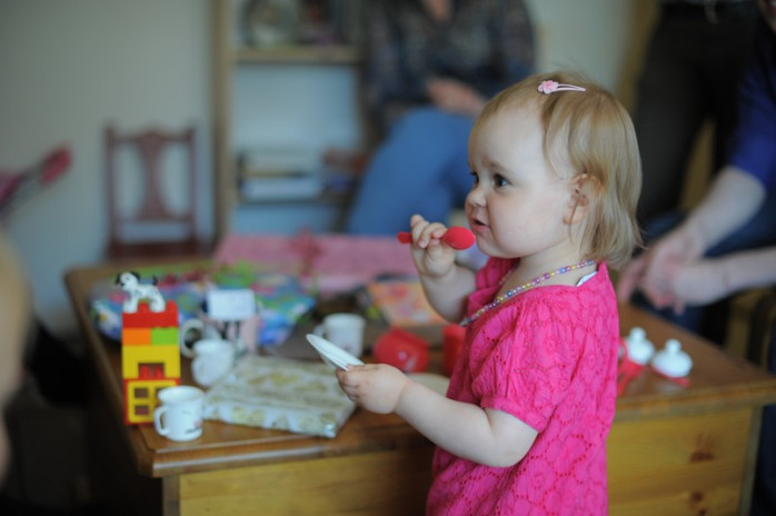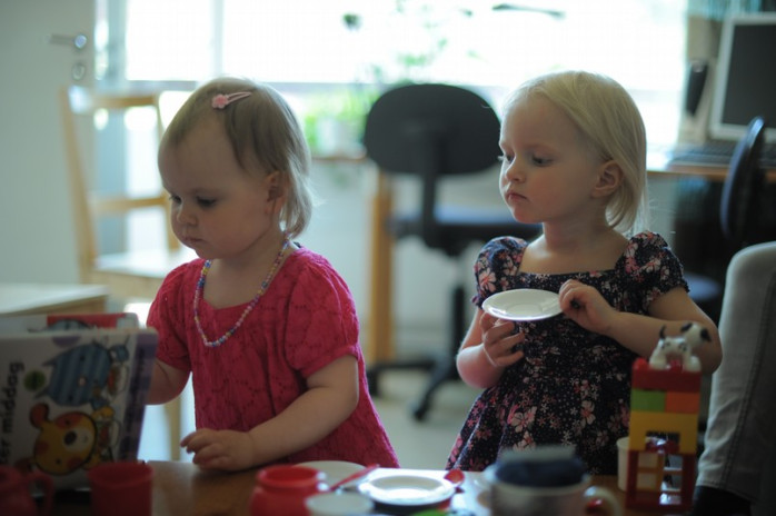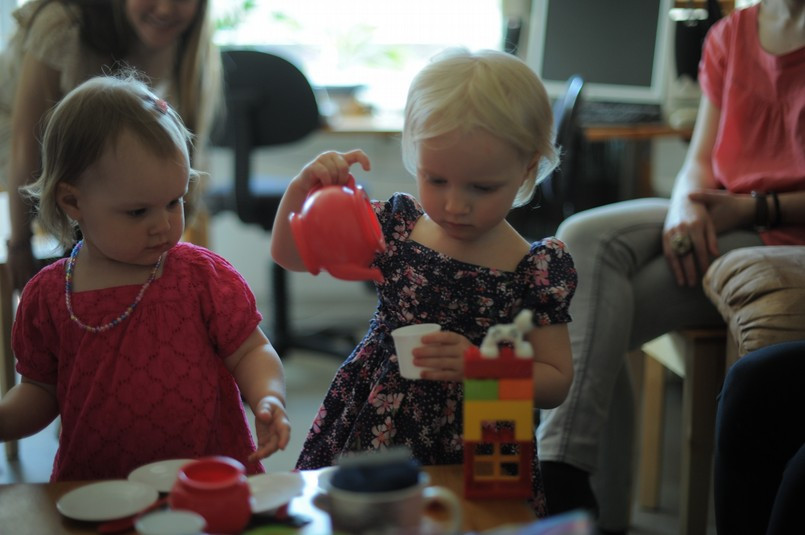 Juni besöker vanligtvis Michelle tre dagar i veckan och då brukar de hitta på en massa skoj tillsammans. Bland höjdpunkterna hör Rebeckas musikklubb, Luddeklubben, dockvagnen och nu lekar med serviset.