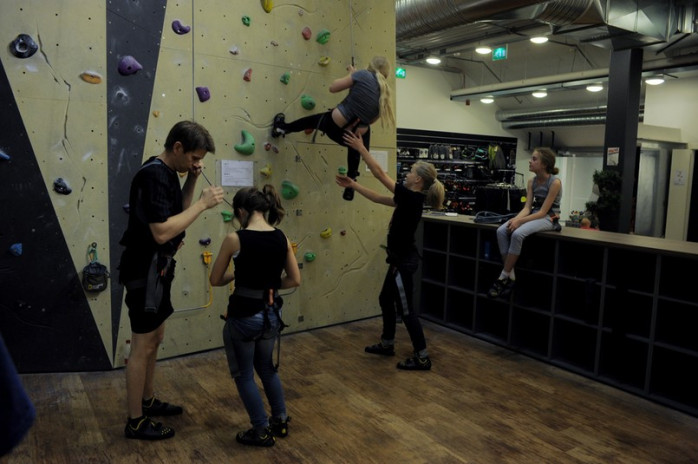 SPORT. Robban provade klättringsväggen tillsammans med sina svensex-polare. Robban och polarna hade känt sig manliga och tuffa när de besteg de höga väggarna, om inte det hade varit för alla småflickor som klättrade brevid.
