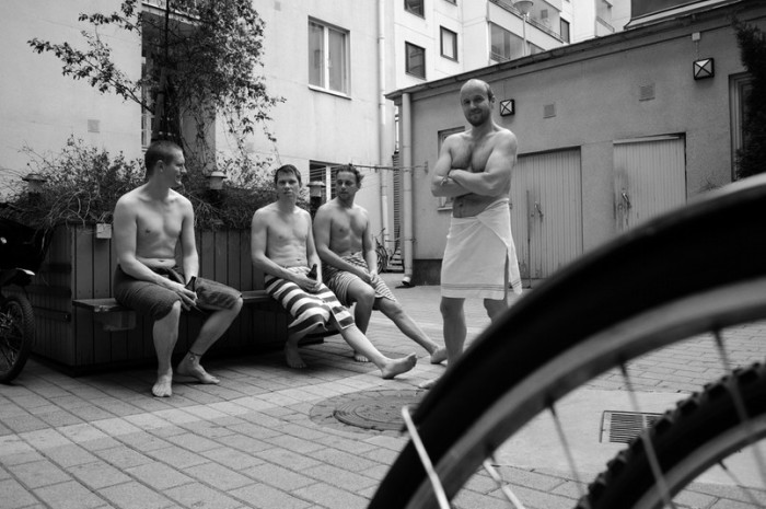 ALLMÄNT. I Berghäll finns kvartersbastun Arla, en traditionsenlig bastuinrättning som får tankarna till tiden då bastun grundades år 1929. Johan, Filip, Peter och Linus firade Robbans svensexa i retrobastun.