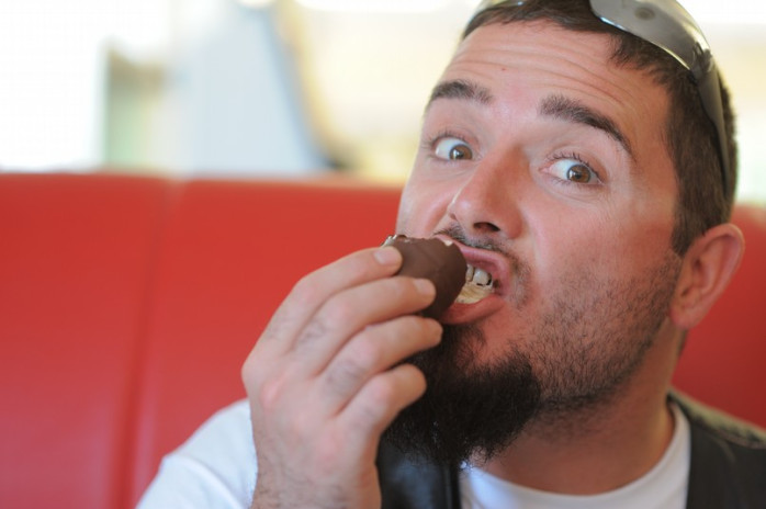 Pontus frågar en kvinna från personalen på restaurangen om hon tycker att de ser farliga ut.