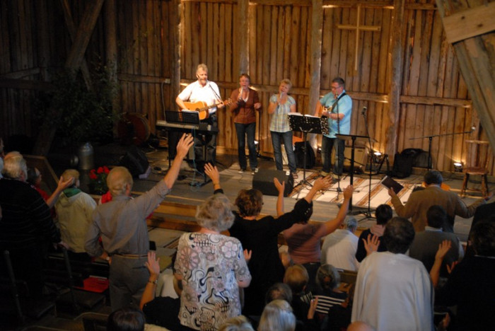 Lovsångsbandet från Inre missionshemmet i Larsmo fortsatte med samma tema och vittnade först om en sång de hade fått av Gud efter att de hade blivit frälsta i början av nittiotalet. Det var med glädje de sjöng och tackade Gud. Atmosfären och Guds Ande gjorde att det Gud ville ha sagt denna kväll blev sagt. Jag ger detta underbara lovsångsteam 10 poäng för deras inslag.