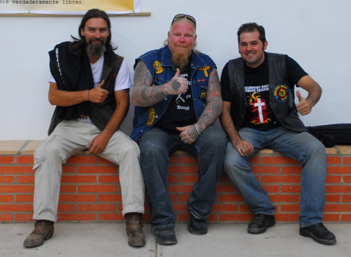 I torsdags inleddes den gemensamma träffen för Gospel Riders Espana, Cover Backs MC och CMA (Christian Motorcyclist Association). Under första kvällen fick vi höra många vittnesbörd och alla hade av någon anledning samma budskap om enhet. Att vi trots att vi är olika klubbar och föreningar kan samlas och uppmuntra varandra är viktigt. Det spelar ingen roll vad som står på västarna, huvudsaken är att vi har Jesus i vårt hjärta och blicken fäst på Honom. Då det blev min tur spelade jag några sånger, vittnade och sade att det verkligen inte spelar någon roll vad som står på västarna, vi är alla Ambassadörer för Jesus Kristus (2 Cor 5:20) och vår lilla förening råkar ju faktiskt heta Ambassadors For Jesus Christ Motorcycle Ministry. Jag tycker verkligen att jag var lite finurlig där om jag får säga det själv.