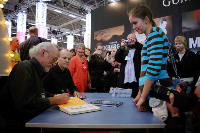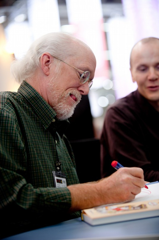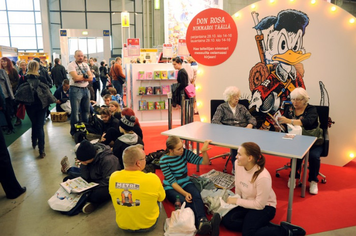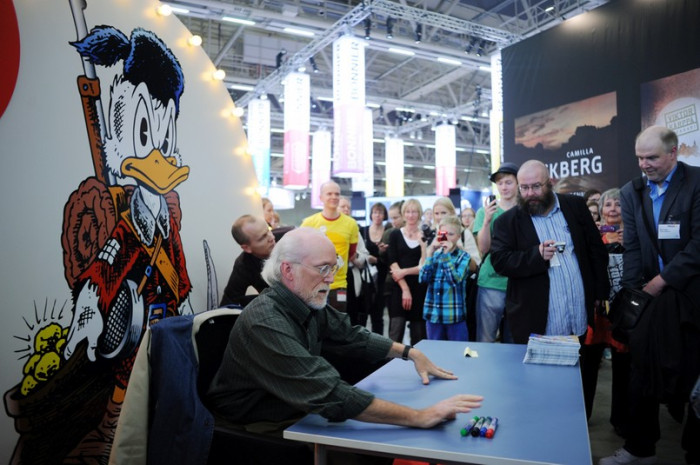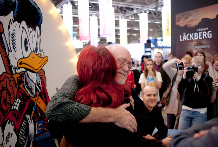 tänka sig. Nu är Don Rosa i Finland igen och ett hundratal människor köar på autograf när han anländer till sitt bord.