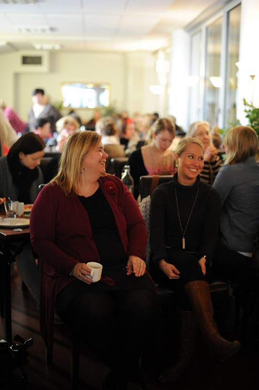 Filadelfiakyrkans cafévåning fylls varje brunchlördag av kvinnor i alla åldrar. Uppskattningsvis var det med 70 kvinnor på lördagens brunch.