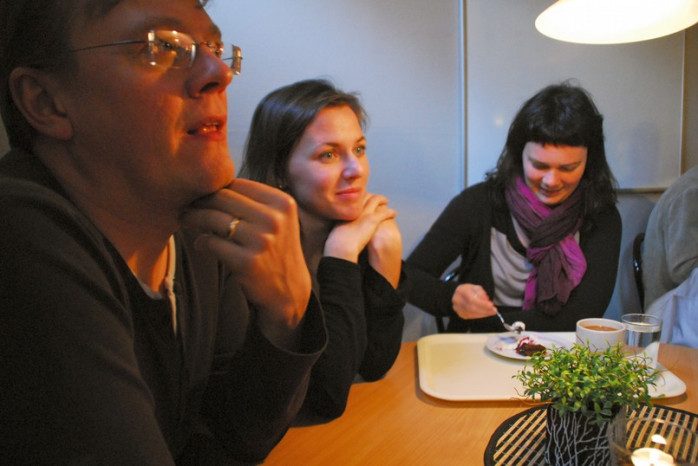 Vi "finnar" beslöt oss för att sätta oss ner tillsammans i en av pauserna igår och det blev en underbar stund tillsammans med vittnesbörd om Jesus. Det råder ingen tvekan om saken, alla som är här talar om och tänker på Jesus. Han är i allas tankar och Den Helige Ande är starkt närvarande. Där satte vi "finnar" tillsammans inträngda i en knut och älskade varandra. Jag försökte fråga några av mina landsmän och kvinnor vad de har att säga om konferensen, bibelskolan och mötena till läsarna på mickelsson.net och det var egentligen svårt att få några vettiga svar. Alla var och är fyllda av Den Helige Ande. Lilian fick ur sig: - Jag har aldrig varit med om en sådan kraft. Jag blev helad i mitt knä och gick i trapporna för att testa det då en kvinna kom emot mig och jag upplevde att Den Helige Ande ville jag skulle be för henne. Då jag lade handen på henne gick det ut en kraft som gjorde att hon höll på att falla baklänges i trappan. Det är ju detta vi fått lära oss att använda auktoriteten och kraften. Jag visste inte det var så här enkelt om man bara tror.