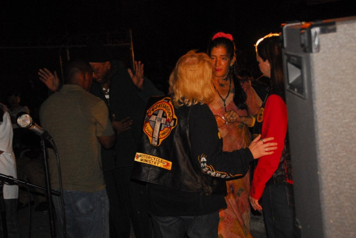 Vi började mötet och jag spelade några låtar. Dessa människor älskade Amazing Grace i rock version och trots att de lever i misär så såg man att en del av dem hade sin trygghet i Jesus. Deras tillbedjan och lovsång var äkta och kom från hjärtat. Jag fick vittna om hur Gud lyfte upp mig ur fördärvets grop då allt såg omöjligt ut och jag uppmanade dem att aldrig ge upp hoppet som finns i Jesus. Vi sjöng flera låtar och läste ur bibeln och då det blev förbön så kom många fram till altaret. En del bad om helande, en del blev frälsta och en kvinna blev döpt i Den Helige Ande.