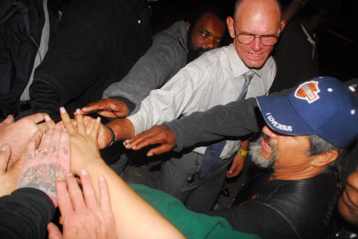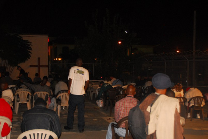 Vi kommer fram och ställer upp våra grejer och gör oss beredda för kvällens Gudstjänst. Pastorn från 1000 Hills Ministry inleder mötet och uppmanar de närmare 200 personer som kommit dit att ta emot Gud och att ta steget att återvända hem. Många kommer från andra håll och har av olika anledningar hamnat på gatan. Hans uppmuntran till dem att låna deras telefon och ringa hem eller till någon gammal vän, släkting eller bekant och säga att de håller på att reda upp livet med Guds hjälp och kommer att komma hem värmde gott inom mig. Jag vet inte vad det var men det kändes hoppfullt.