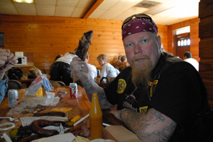 Det enda Pontus visste var att man kunde köpa kött där. Då de andra berättade att man själv gick in i något som hette "the pit" så tyckte Pontus att detta lät underligt men då de väl var framme visade det sig att "the pit" är rökrummet där de röker och grillar köttet. Man fick beställa rökt och grillat kött samt deras egen gjorda korv. En kringla korv som precis tagits ur ugnen kostade två dollar. Bröderna köpte fyra kringlor samt 2,5 kilo kött.