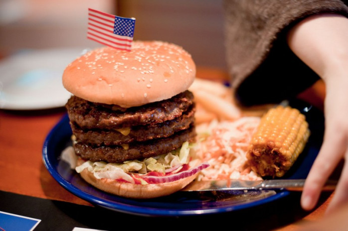 Med sina tre biffar på 550 gram plus bröd, lök, ägg, franskisar, sallad och vem vet vad är portionen härmed certifierad som familjeburgare. En liten familj äter sig mätt på rackaren. Åtminståne en med Juni, Christa och Linus.