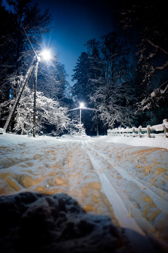 Skidspår i centralparken vid Brunakärr