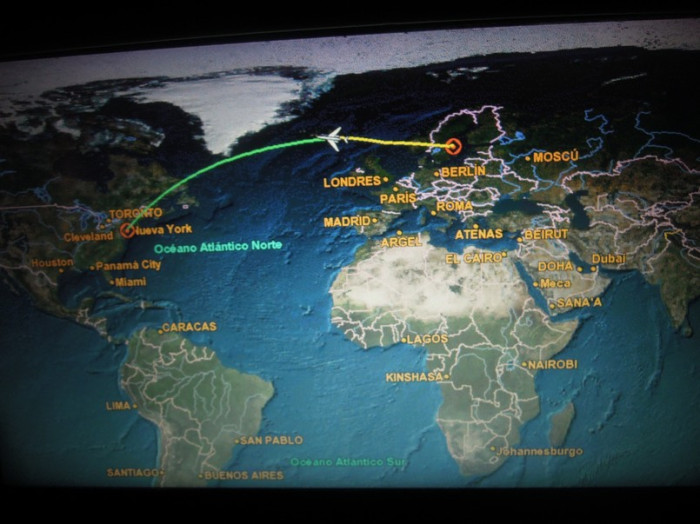 Efter att Pontus druckit en kopp kaffe med sin pappa Olof på flygfältet i Vasa steg han ombord på Blue 1:s flight till Stockholm, Arlanda. Där fanns inte mycket överlopps tid utan han fick skynda sig till andra sidan terminalen för att hinna med nästa flyg, den långa resan över Atlanten. Pontus som gör sitt bästa för att hålla kostnaderna nere reste i "ekonomy saver" class. Trots detta beskriver han själv sin plats i planet som lite av första klass.