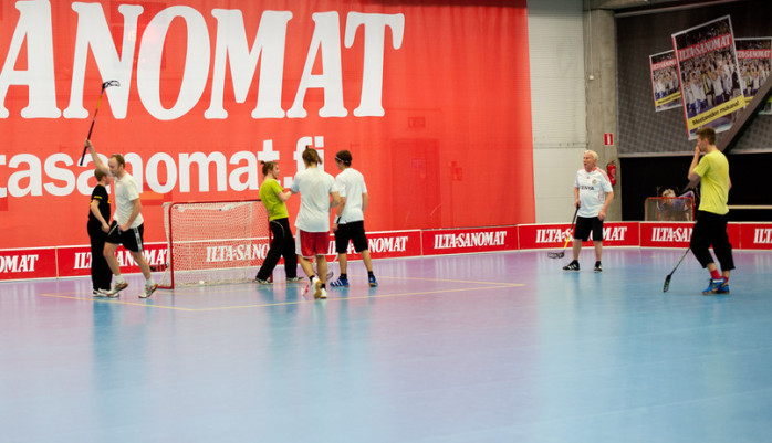 I Kvarnbäckens Arena Center brukar det vara full rulle på fredagkvällar. Senaste fredag bekantade sig Tom för första gången på länge med en spelplan med sarg. Största delen av speltiden spelade han defensivt, men mot slutet, sköt han mål från liten vinkel. Mickelsson.nets fotograf Christa hade dock förutsett spelläget och hon kammade hem en fotoserie med bevismaterial. På Toms lag spelade också sönerna Victor och Linus.